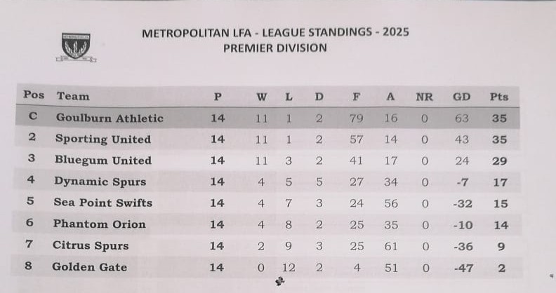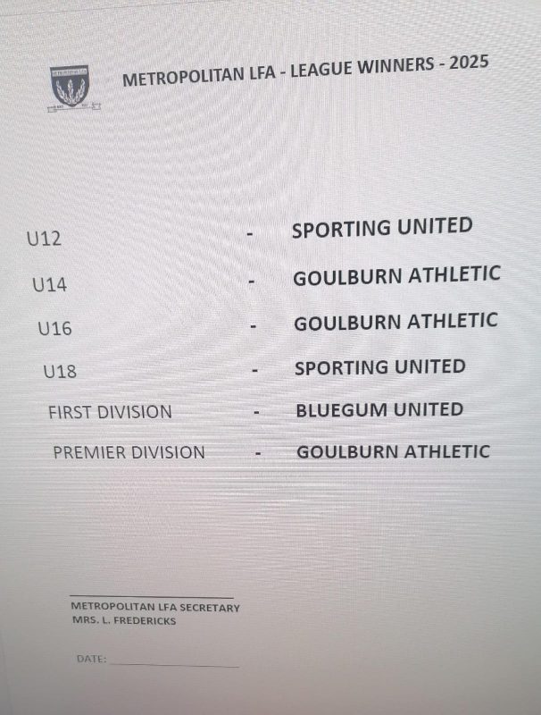 It’s official: Metropolitan LFA declares Goulburn as league winners for Third Division playoffs October 9, 2025 No Comments