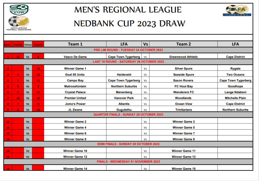 The region has released the Nedbank Cup fixtures which is also an indication of the start of the season for the clubs in the Fourth Tier.