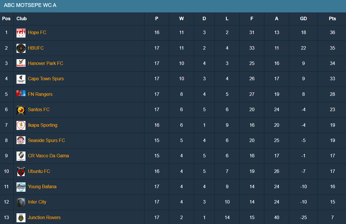 Meanwhile, Hanover Park FC stayed in the hunt with a 2-1 away victory over struggling Junction Rovers at the Heideveld Sports Complex on Saturday. This further compounded the misery of the homeside and brought relegation just another step closer.