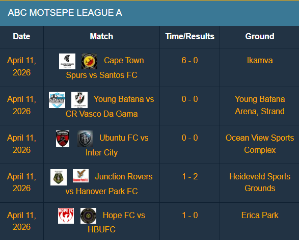 The latter played out to a goalless draw against Young Bafana in Strand, while Ubuntu FC and Inter City also shared the spoils in a goalless draw at the Ocean View Sports Complex on Saturday afternoon.